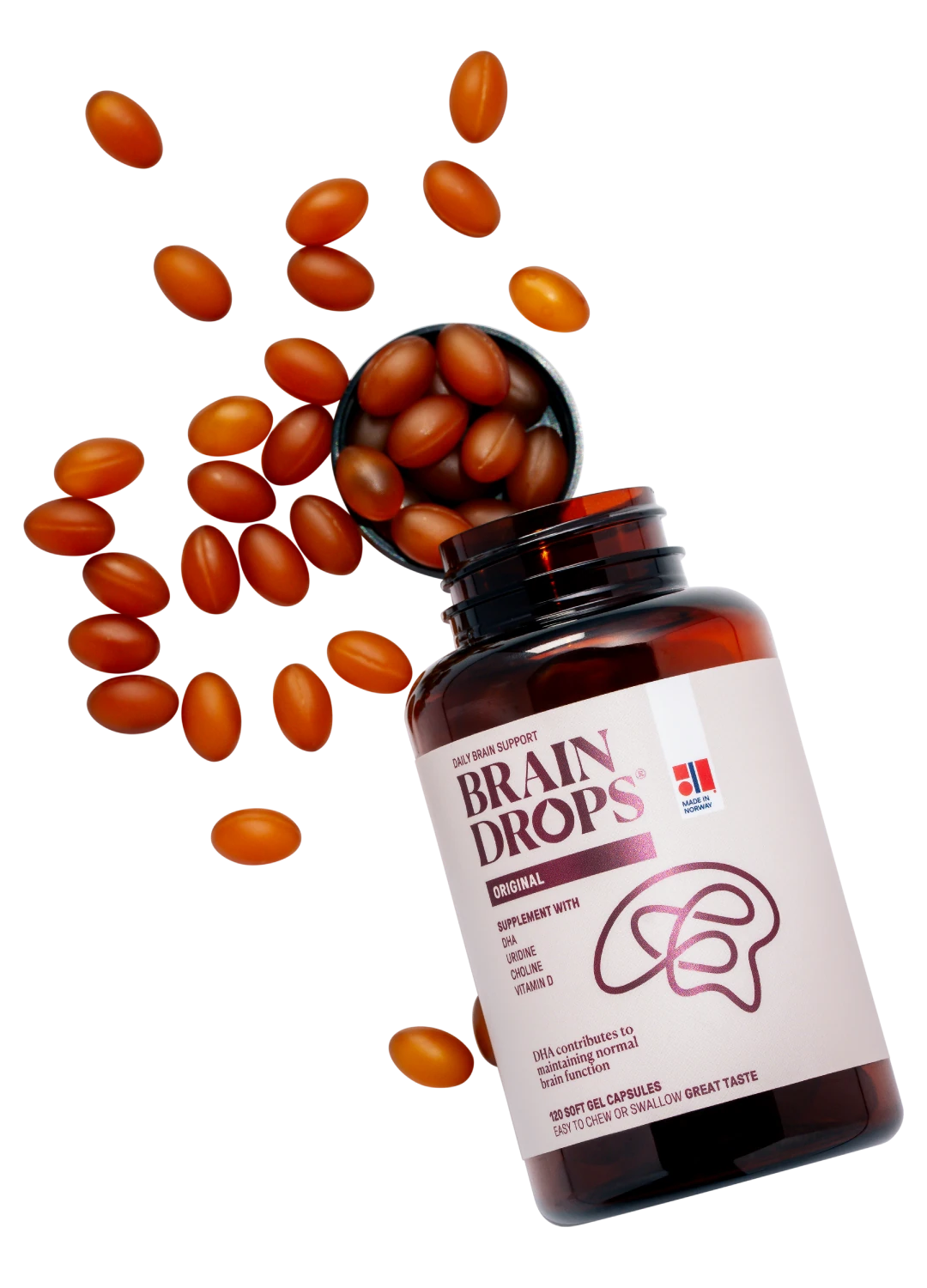 BrainDrops® originated from a Danish initiative with the goal of contributing to a better quality of life for people in need of support for cognitive function. In collaboration with Danish professional communities and De Danske Apotekene, a dietary supplement was developed with a focus on nutrients such as DHA, uridine and choline – substances that are naturally part of the brain's structure and function.